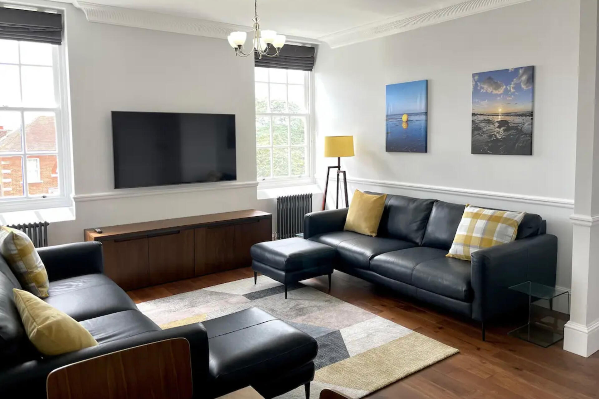 High Ceilings, light, airy and spacious. Ideal for a family of 4 or two couples. Sea views from kitchen and bedroom windows. Situated just behind the Whitstable Castle.